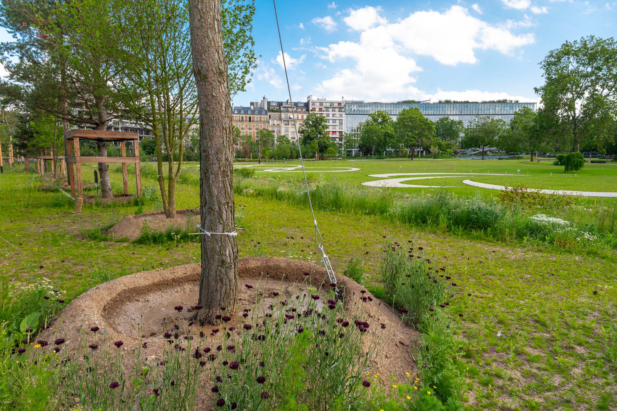 L’extension du square Parodi permet d’étendre l’ambiance du Bois de Boulogne en le faisant entrer dans la ville jusqu’en lisière de l’Axe Majeur. Cette extension prendra la forme d’une alternance de bosquets plus denses et de clairières déclinant les essences végétales du bois de Boulogne.